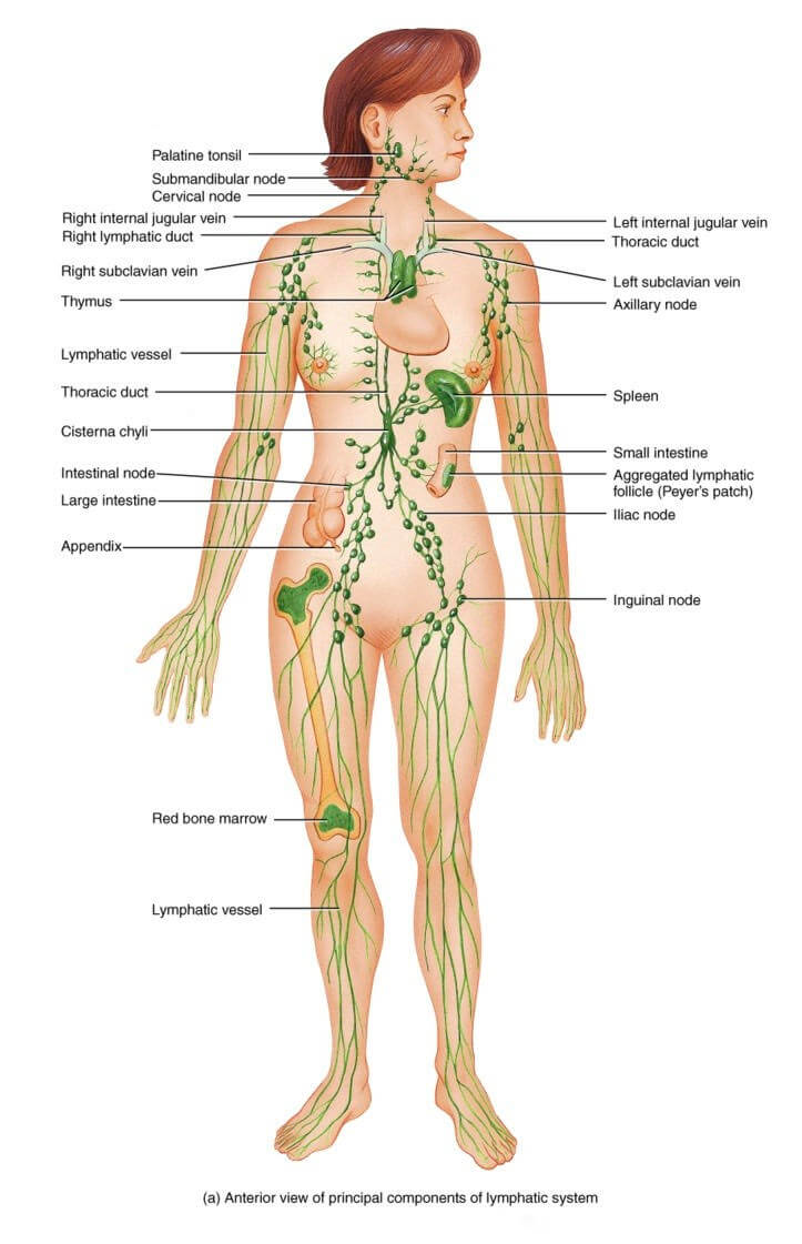 Some 20 litres of plasma flow through your body’s arteries and smaller arteriole blood vessels and capillaries every day. After delivering nutrients to the body’s cells and tissues and receiving their waste products, about 17 litres are returned to the circulation by way of veins. The remaining three litres seep through the capillaries and into your body’s tissues. The lymphatic system collects this excess fluid, now called lymph, from tissues in your body and moves it along until it’s ultimately returned to your bloodstream.